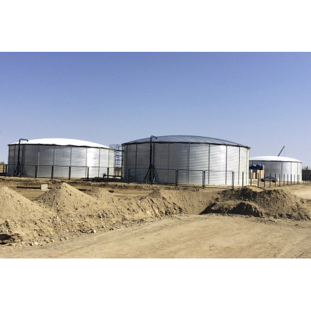Способ выполнения емкостей каркас из гофрированной оцинкованной стали толщиной от 1 до 4 мм (минимальный модуль упругости 350 N/mm), на болтовых соединениях (размер листа 3000 х 1150 мм), внутри вкладыш из мембраны полипропилена. Между вкладышем и оцинкованными листами (цинковым покрытием минимум 275 г/м2), а также на дно емкости устанавливается защитная ткани геотекстиль толщиной 1 мм. Вкладыш изготовлен из мембраны полипропилена толщиной от 0,6 до 1 мм с прочностью на разрыв 18 МПА, растяжение при разрыве 300% (герметичность вкладыша проверяется избыточным давлением), УФ - стабилизация устойчивость к проколам. Диапазон температур -40 +110 градусов