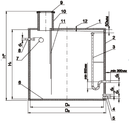 Согласно транспортным возможностям перевозки резервуаров полной заводской готовности, их максимальный объем не должен превышать 150 м3 (DBH = 3 м, L(Н) = 22 м). Внутренние диаметры резервуаров: 1000, 1200, 1400, 1600, 1800, 2000, 2400, 2550, 3000 мм.