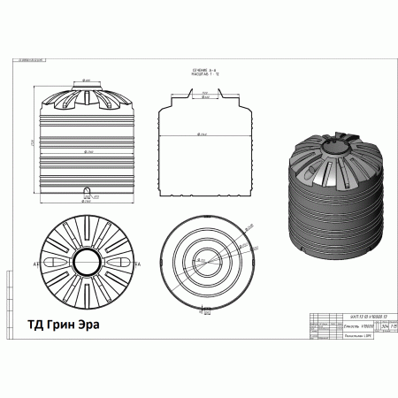 Емкость вертикальная на 10000 литров (бочка 10 м3), пластиковая