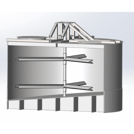 В зависимости от среды, в которой проводится смешивание, рабочий орган может быть изготовлен из черного металла, нержавеющей стали, а также быть облицованным полиэтиленом или полипропиленом в соответствии с условиями эксплуатации. Все емкости с перемешивающими устройствами комплектуются мотор-редукторами различной мощности, необходимой для работы определенного рабочего органа. Также устанавливается частотный преобразователь для плавного запуска и остановки перемешивающего устройства.
