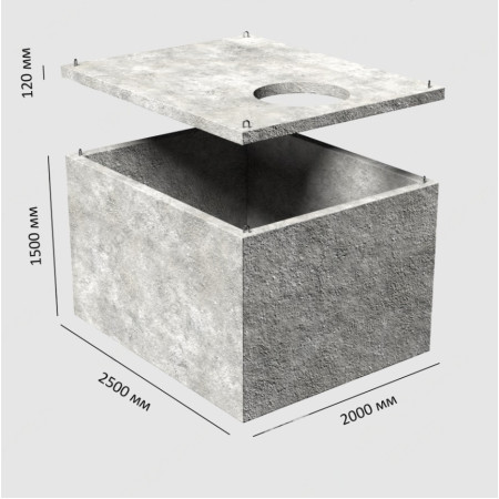 Выгребная яма изготовлена из гидротехнического бетона высокой жесткости марки W10 с армированием. Этот материал устойчив к окислению, деформации под воздействием пучинности почвы и грунтовых вод, а также к любым другим внешним факторам. Однокамерная выгребная яма водонепроницаема за счет чего не происходит загрязнение грунта. Специально для подключения трубы канализации на торце ямы предусмотрен патрубок. Также при необходимости его можно встроить в другом месте с любым диаметром. Для откачивания отходов из выгребной ямы подходит фекальный насос с измельчителем или без.