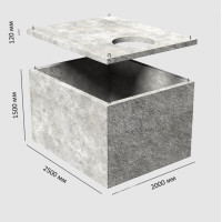 Выгребная яма из бетона имеет вид цельного блока с отверстиями для подключения сливных труб и люка для обслуживания. Конструкция обычно однокамерная, круглой либо квадратной, прямоугольной формы. Выбор зависит от доступной для монтажа площади..