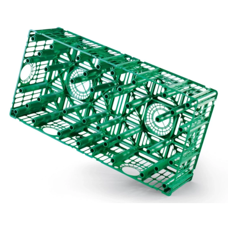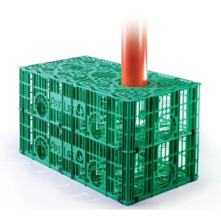 В основе каждого блока лежит полипропиленовая решетка, содержащая в себе разные виды ребер жесткости, которые служат для максимальной прочности и надёжности. Возможны разные варианты монтажа блоков: один кладется сверху другого; подобно кирпичной кладке, с перевязкой.