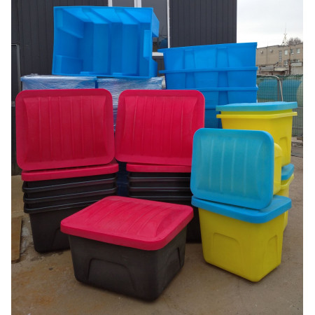 Контейнер 290 л. промислова ємність, створена спеціально для зберігання речовин, які легко розсипаються: пісок, корми для тварин, продукти і т.д. Також для стаціонарного зберігання рідин. Контейнер 500 літрів промисловий виготовлений із поліетилену, призначеного для харчових продуктів та питної води.
