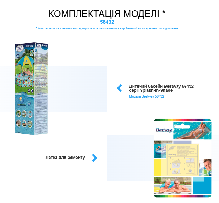 Басейн складається з 3-х частин. Металевого трубчастого каркаса, ПВХ чаші й навісу від сонця. Тент виконаний зі спеціального полімеру за стандартом UV захисту UPF40t. У конструкцію також вбудований водний розпилювач. Міцна чаша Чаша виготовлена з ПВХ яскравого кольору. Матеріал виготовлений за технологією Tritech, що захищає його від розриву та проколу. Металевий каркас Основу каркаса складають металеві трубки з антикорозійним покриттям. Каркас забезпечує стійкість самої чаші та навісного тенту.