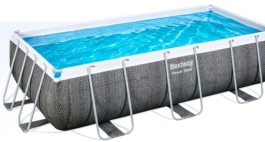 Каркасний басейн Bestway 56721 – це модель прямокутної форми з помірними габаритами та може встановлюватись на будь-якому дачному дворі чи прибудинковій території. Чаша басейну виконана із трикульового армованого лайнера. Покриття Framelink захищає каркас від іржі, гарантує високу надійність та довговічність усієї конструкції. У комплекті з басейном поставляється драбини, змінний картридж для фільтра, фільтраційна установка та вбудований дозатор хлору, що гарантує підтримку чистоти води протягом усього сезону купання. Відрізняється від інших подібних басейнів незвичайним зовнішнім оформленням - сталевий Раттан.