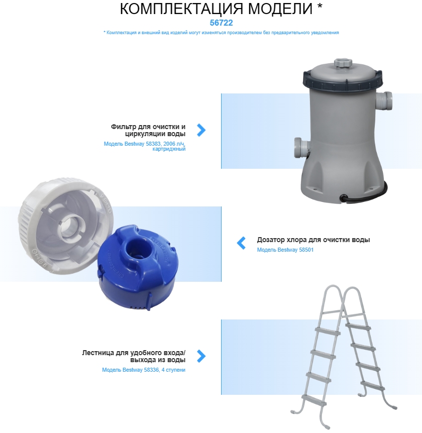 Басейн Bestway 56722 завдяки своїй прямокутній формі та великим габаритам може використовуватися всією сім'єю для активного відпочинку на природі. Басейн завдовжки 4,12 метрів і шириною 2,01 метра, дозволять плавати, купатися і навіть грати в м'яч. У Водночас басейну не потрібно багато простору для встановлення, достатньо підготувати майданчик під дно та додати 40-50 см на кожну сторону під опори каркасу. Поєднання великого розміру, доступної вартості та багатої комплектації роблять цей басейн однією з найкращих пропозицій на ринку в цьому сегменті.