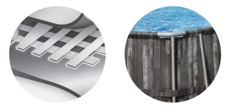 Міцна та довговічна чаша басейну Чаша басейну виготовлена з матеріалу Tritech. Покриття включає 3 шари. Зовнішній зносостійкий ламінований ПВХ лайнер захищає чашу від негативного впливу ультрафіолету. Міцна поліефірна сітка перешкоджає деформації басейну. Внутрішній ламінований ПВХ лайнер імітує обробку мозаїкою.
