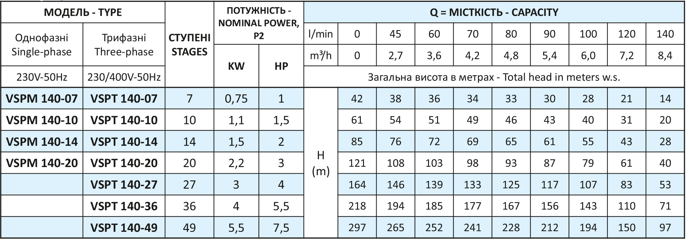 Багатоступінчасті занурювальні 4” насоси Vinar VSPM 140 для глибоких свердловин. Використовуються, головним чином, для подачі чистої води в побутових та промислових цілях, дощових і зрошувальних установках, в системах пожежогасіння для подачі води зі свердловин.