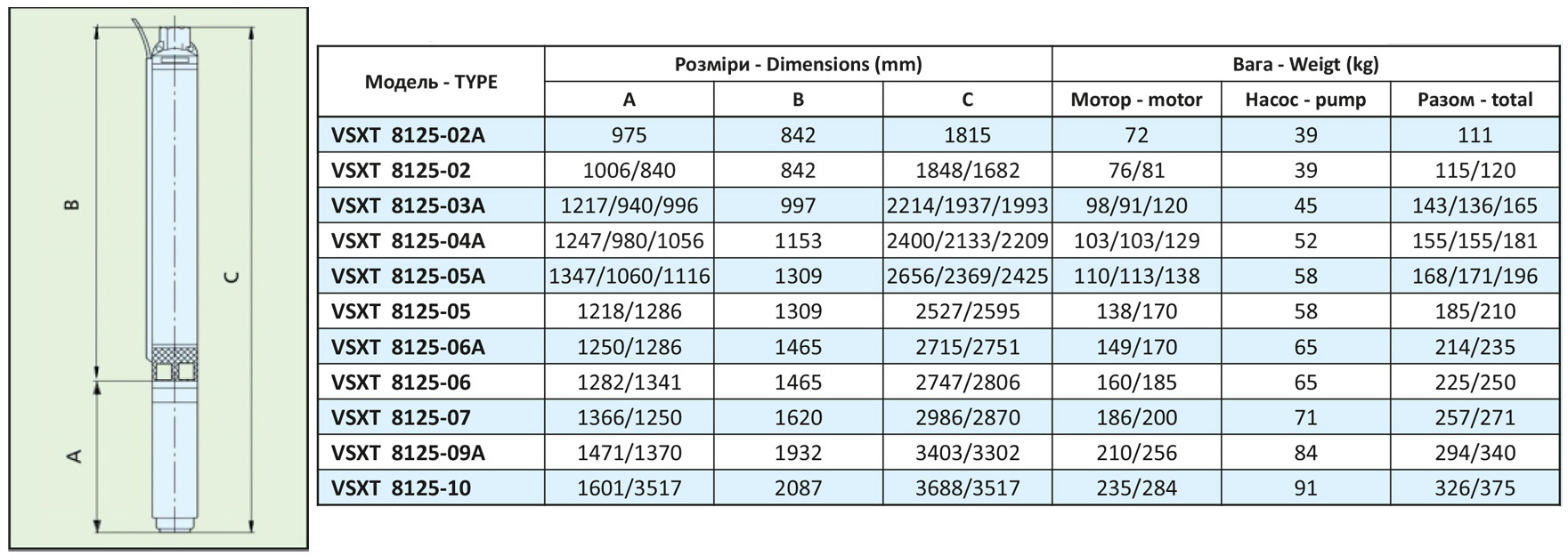 Багатоступінчастий занурювальний насос Vinar VSXT 8125-05A 8", 45 кВт, 3~400В