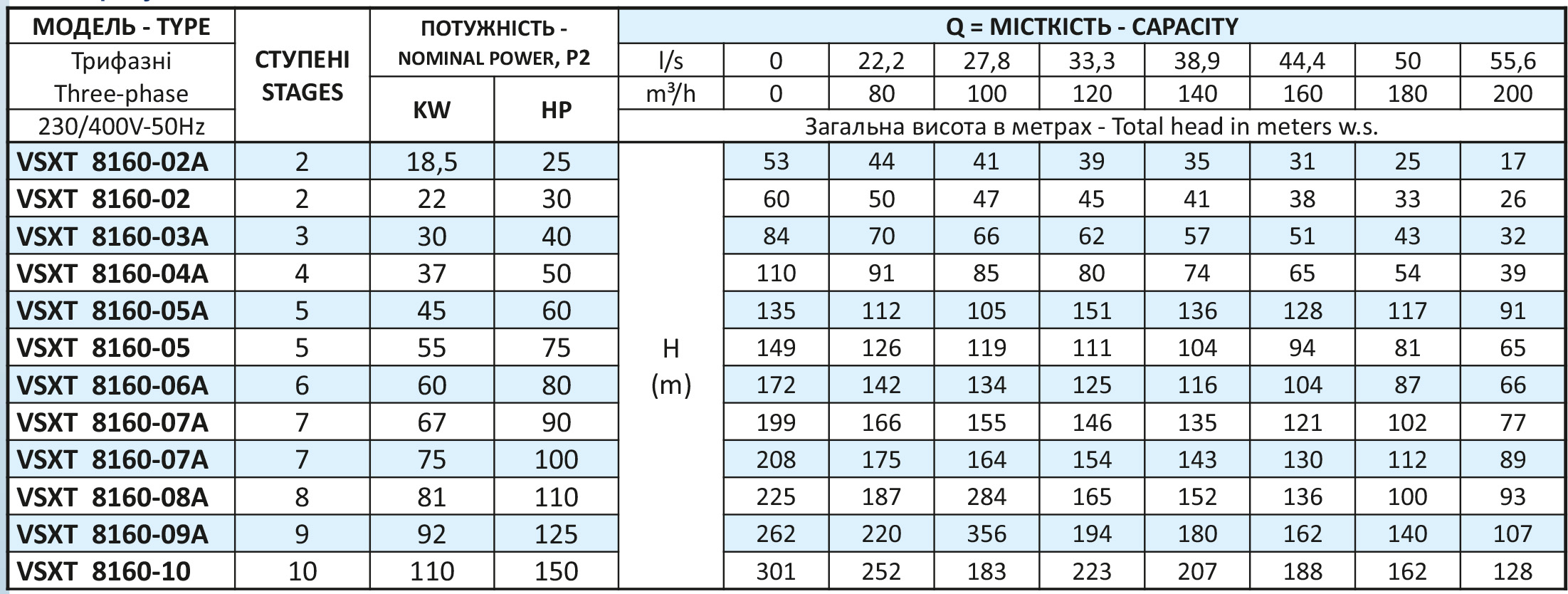 Багатоступінчастий занурювальний насос Vinar VSXT 8160-10 8", 110 кВт, 3~400В