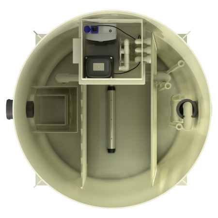 Корпус установки виготовляється з поліпропілену. Цей тип установки є підземним. Установка виготовляється у двох варіантах у: - несамонесучому корпусі (монтаж у залізобетонні кільця). Найкраще для влаштування при високому рівні ґрунтових вод та під парковою або місцем проїзду транспорту. - самонесучий корпус «SS»(монтаж на вирівнюючу плиту). Тільки для низького рівня ґрунтових вод. Конструктивні особливості станції забезпечують високу ступінь очищення стічних вод, очисні споруди прості та надійні в експлуатації, а також стійкі до нерівномірного надходження стічних вод.