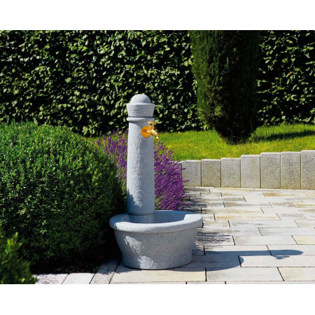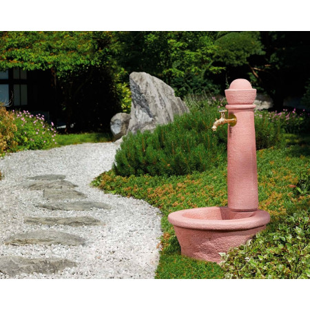 Асортимент колонок представлений в різноманітному дизайні, що дозволить кожному споживачеві підібрати виріб, який якнайкраще впишеться в ландшафт Вашої ділянки. Виконаний з пластика з текстурою у вигляді граніту світлого і темного. Стильний бронзовий кран. Глибока чаша з пробкою може служити для самих різних цілей (від миття овочів до напувалки для домашніх тварин). Установка робиться на бетонну основу за допомогою дюбелів, підключення до водопроводу знизу за допомогою накидної гайки. Високоякісний поліпропілен і стійкий барвник створюють колонкам надійний захист від ультрафіолетових променів і довго зберігають зовнішній вигляд.