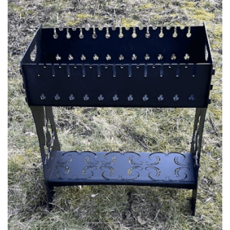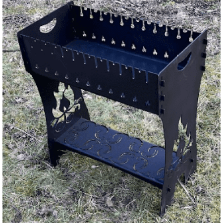 Преміальний високий розбірний мангал, зроблений із міцного термостійкого металу завтовшки 3 мм. Виготовлений спеціально на високих ніжках щоб стояти на повний зріст і насолоджуватися приготуванням їжі. Виріб має зручну розбірну конструкцію, яку можна легко перевезти та зібрати у зручному місці. Каркас мангалу прикрашений невеликим гравіюванням, яке надає йому особливого характеру. Гравіювання можна виготовити на замовлення за Вашим ескізом. Мангал власного виробництва. Пофарбований вогнетривкою фарбою.