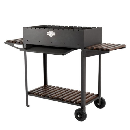 Містка решітка гриль дозволить приготувати BBQ для великої компанії. Також мангал розрахований на приготування традиційного шашлику чи інших страв на шампурах. За допомогою коліс ви з легкістю можете переміщати мангал по ділянці. Жаростійка фарба витримує температуру до 500°C. Цього буде достатньо для понад 5 років використання.