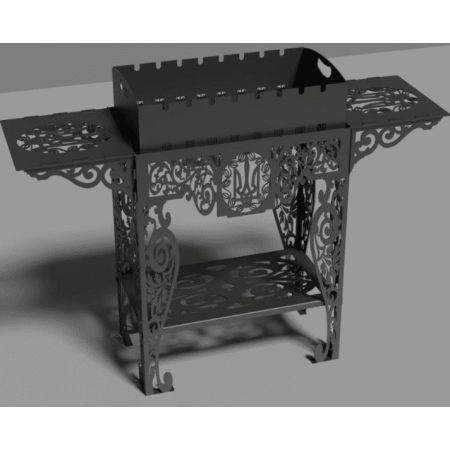 Великий розбірний мангал на 12 шампурів із міцного термостійкого металу зі зварною жаровнею. Має зручну розбірну конструкцію. Знизу ніша під дрова.