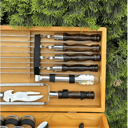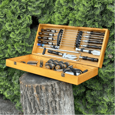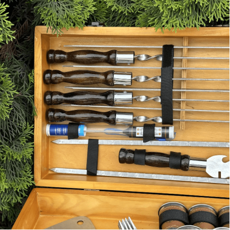 Подарунковий набір шампурів - символ гостинності та радості приготування їжі на відкритому повітрі. Будьте впевнені, що ваш подарунок буде затребуваний та оцінений на будь-якому заході.