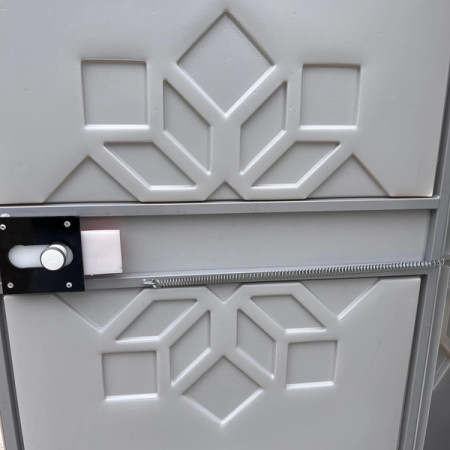 Туалетна кабіна на яму вигрібну - призначена для дотримання санітарних норм, у місцях скупчення людей, на дачі або у місцях без підведення центральної каналізації. Ця кабінка туалету без пластикового баку для збору відходів. Встановлення цієї конструкції не потребує додаткових заходів і підготовки. Не потребує підведення освітлення, оскільки дах конструкції білого кольору - добре пропускає денне світло. Кабіна виготовлена з високоміцного пластику який витримує температурні перепади.